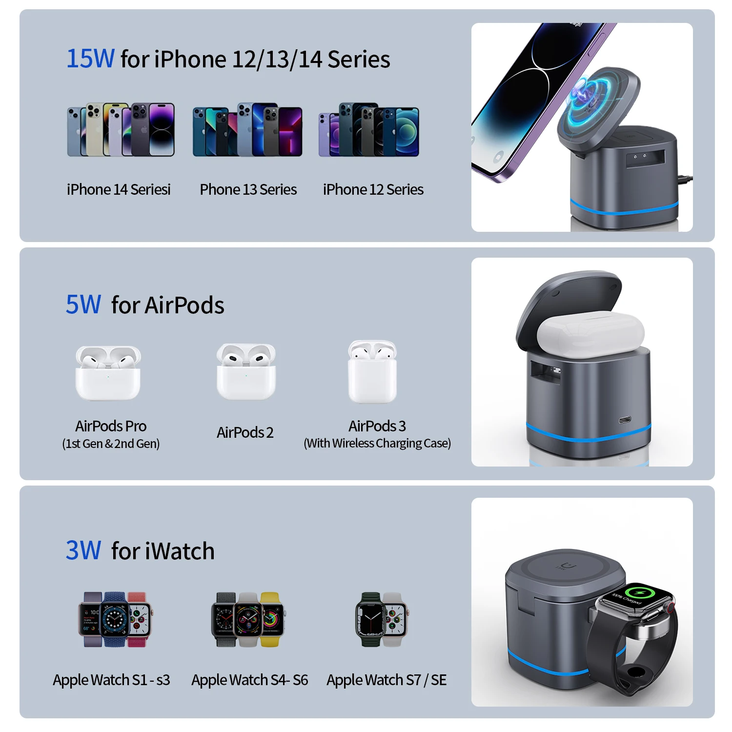 H32,Wireless Charger, Universal Adapter, 3 in 1 Wireless Charging Station, Desktop Charger, Fast Charger