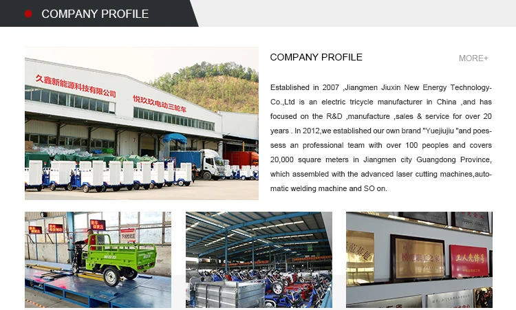 Maximum Speed30-50Km/hCharge Time(h)7-9hGrade Ability20-25°Driving Mileage30-50kmUse ForCargoBody TypeOpenCertificationGCCPassengers1-3Brake SystemFront drum+Rear drumCurb Weight200-300kgPayload Capacity≥400kgDriving TypeElectricBrand NameJIU XINPlace of OriginGuangdong, ChinaSize2900*1080*1340mmProduct name1.5 M Agility Iron Triple open mountain tricycleColorCustomizedMax speed(km/h)40 km/hLoading capacity450 kgBattery CapacityLead acid batteryClimbing Ability<=25 DegreeMaterialIronVehicle size2900*1080*1340mmCarriage dimensions1500*1000*420mm